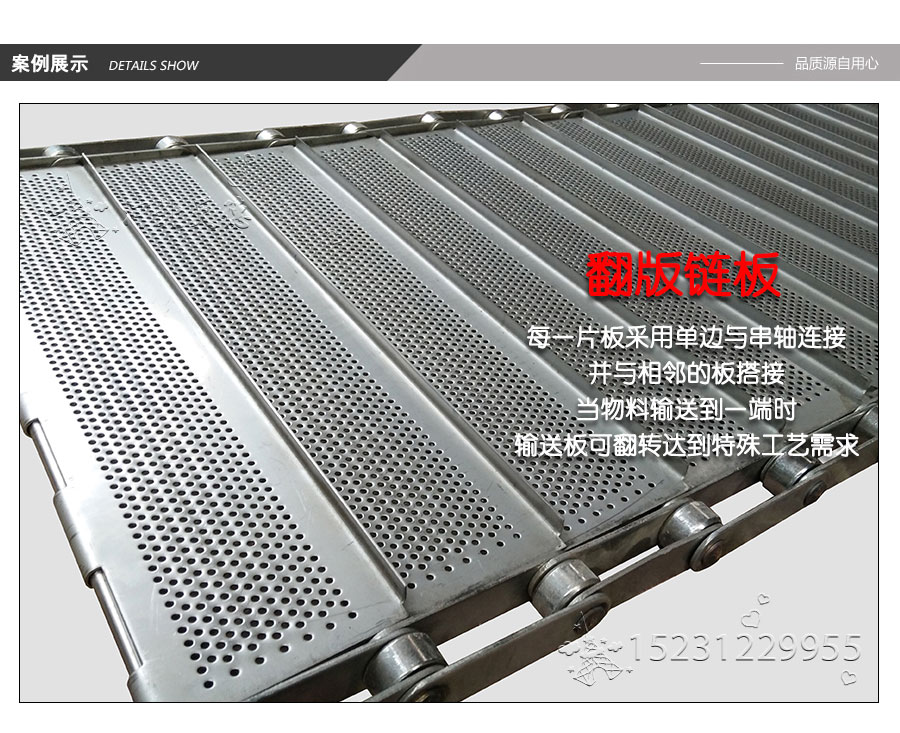 輸送鏈板非常堅(jiān)固由鏈條驅(qū)動(dòng)采用金屬板材生產(chǎn),適合用于輸送細(xì)小的高密度物件,輸送過程中運(yùn)轉(zhuǎn)平穩(wěn)安裝更換方便,成本相對較高使用壽命較長用于中等和大負(fù)荷輸送。鋼板彎曲形成合葉,使用支軸將合葉和鏈條串在一起。兩端的鏈條可以使用開口銷或者墊圈來固定,使用開口銷方便拆卸,維護(hù)方便。
