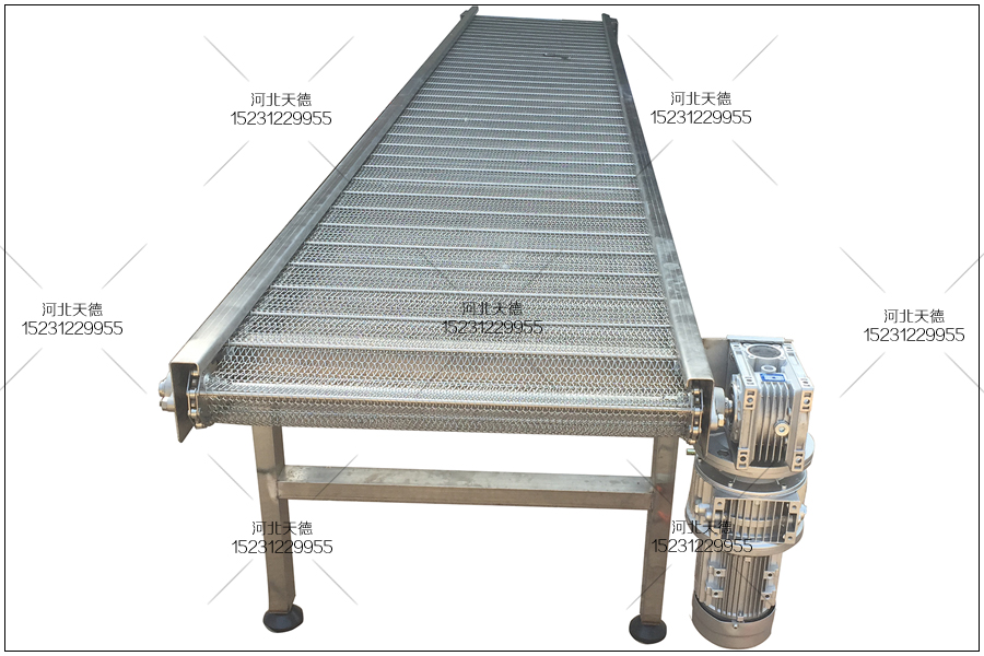 網(wǎng)帶輸送機的長度為7米,鏈條不銹鋼輸送帶的長度為14米。